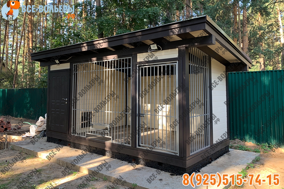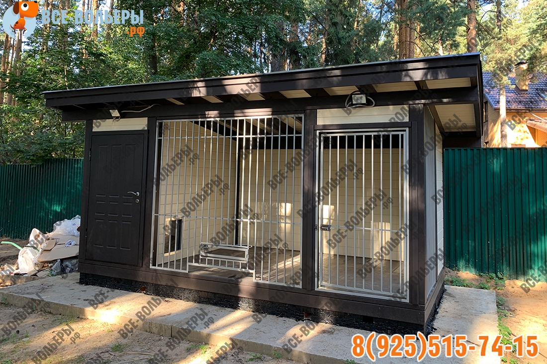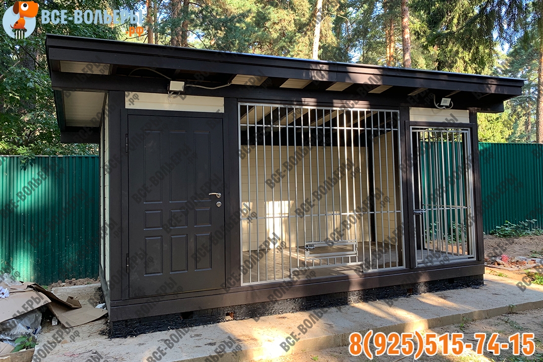 Особенность вольера «VOL_49» будка с дверцей. Вы можете загнать собаку в будку в виде зимника и закрыть люк. Это полезно, когда у Вас гости, собака постоянно лает и мешает отдохнуть.